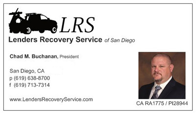 Lenders Recovery Service is a professional Recovery Agency serving San Diego County and beyond. In addition to San Diego, LRS also services Southwest Riverside County, South Orange County and Imperial County at a minimal extra cost. We use newer company-owned wheel-lift tow trucks, newer LPR camera cars, and have a secure 1.5 acre yard in the very middle of San Diego County.